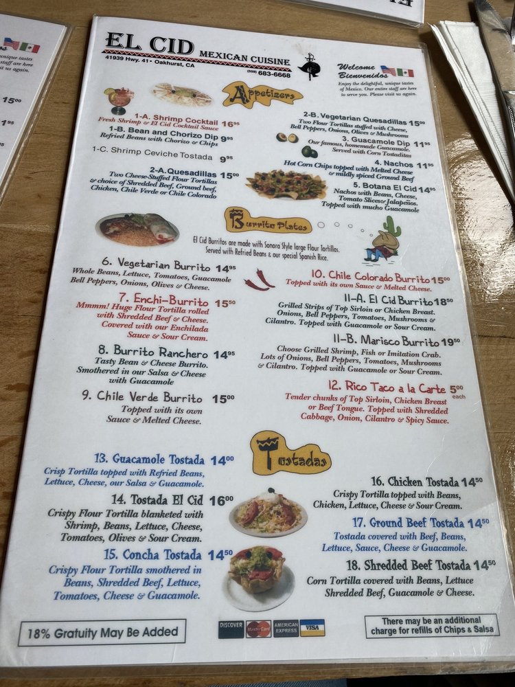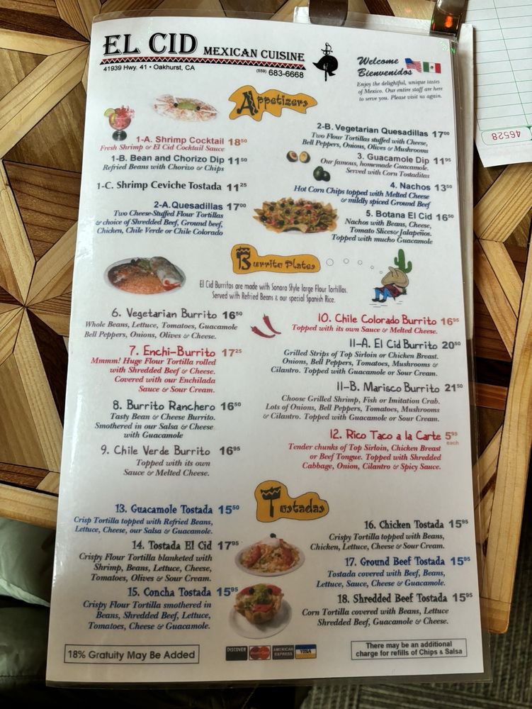Welcome to El Cid Mexican Cuisine, a charming destination where authentic Mexican flavors meet an inviting atmosphere. Situated at 41939 Hwy 41 in Oakhurst, CA, this restaurant is a culinary gem that captivates both locals and visitors alike.